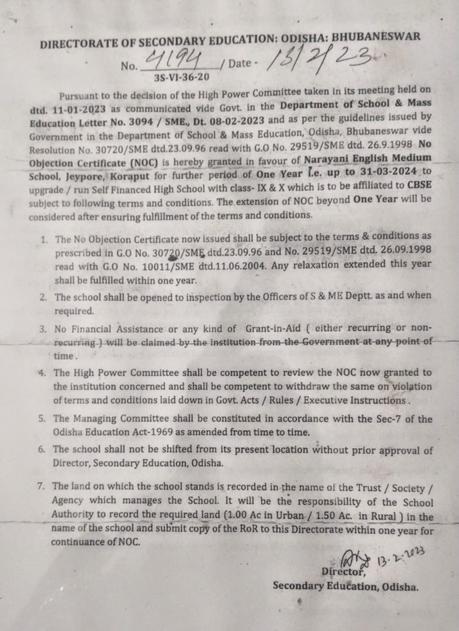 04 COMPLETE ADDRESS WITH PIN CODE NARAYANI ENGLISH MEDIUM SCHOOL, OPPOSSITE GOVT BOYS HIGH SCHOOL, NKT ROAD, P.R PETA, JEYPORE 764003